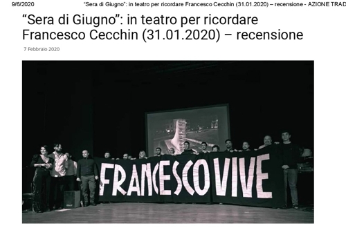 Da segnalare con enorme soddisfazione la realizzazione si uno spettacolo teatrale "Sera di Giugno" che racconta la storia di Francesco, e riteniamo che questo sia il modo più bello per ricordare.