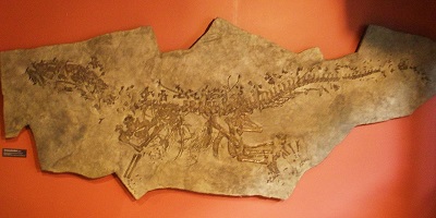 Fossile Ticinosuchus Ferox (Click CC license)Circa quarant'anni fa sono stati però scoperti a Besano (nota zona fossilifera in provincia di Varese) resti del "Ticinosuchus ferox", un Rettile terrestre appartenente all'Ordine dei Tecodonti da cui si sono quasi certamente evoluti i Dinosauri.